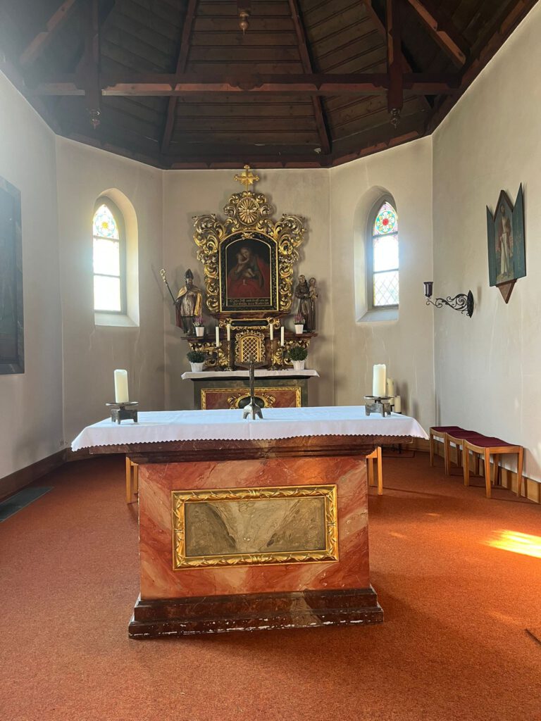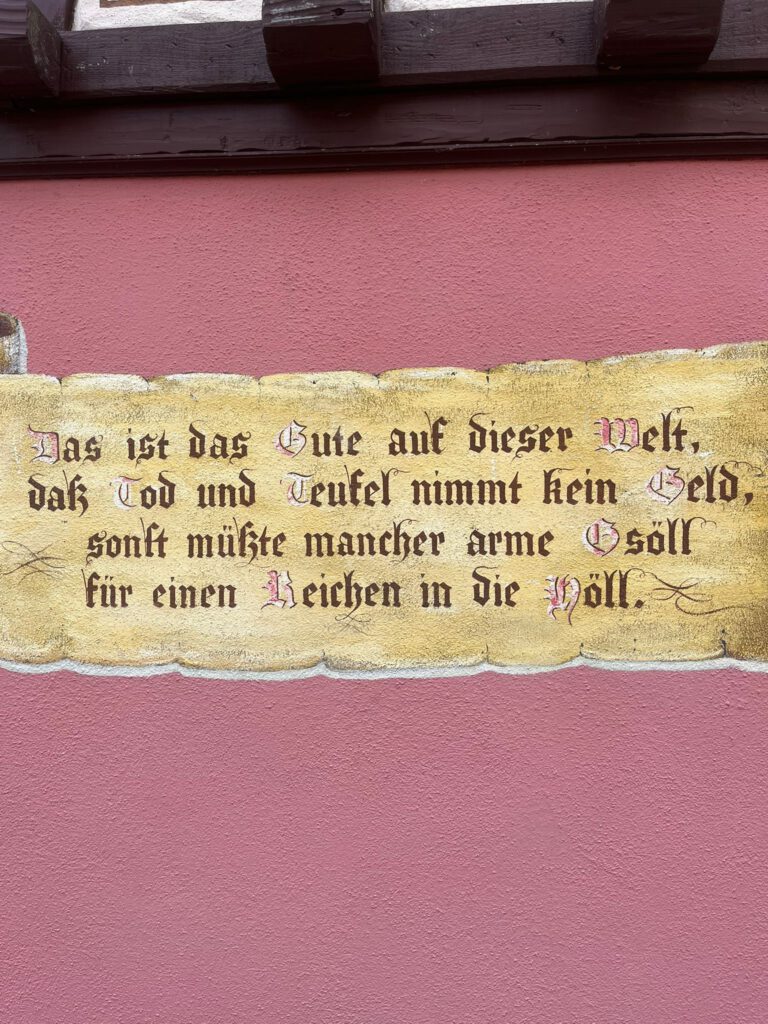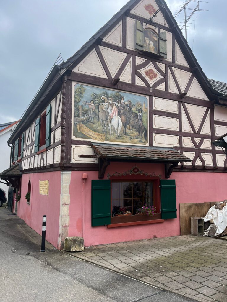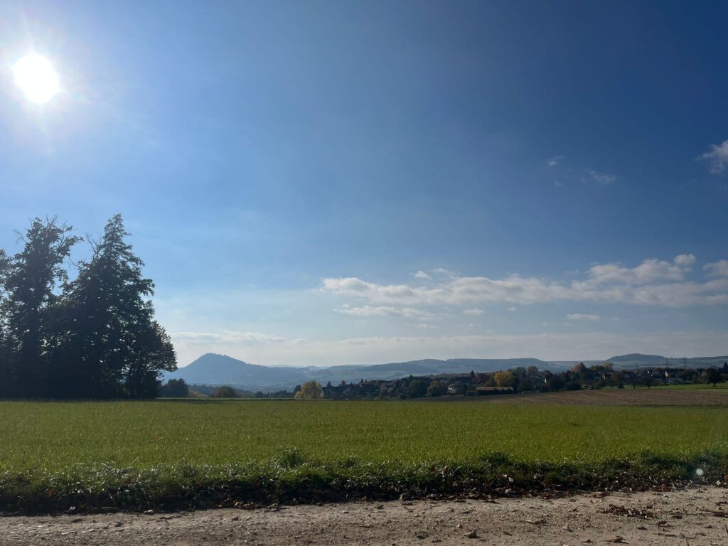 Nur eine kleine Gruppe von 7 Wanderer waren es welche einen wunderschönen Sonntagnachmittag erlebten. Das Wetter konnte nicht besser sein. Bittelbrunn ist ein sehr schönes Dorf inmitten von Streuobstwiesen mit wirklich kleinen Schmuckstücken, wie einem bemalten Fachwerkhaus, schönen Brunnen, einer alten Kirche und immer wieder Aussicht auf die Vulkanberge.